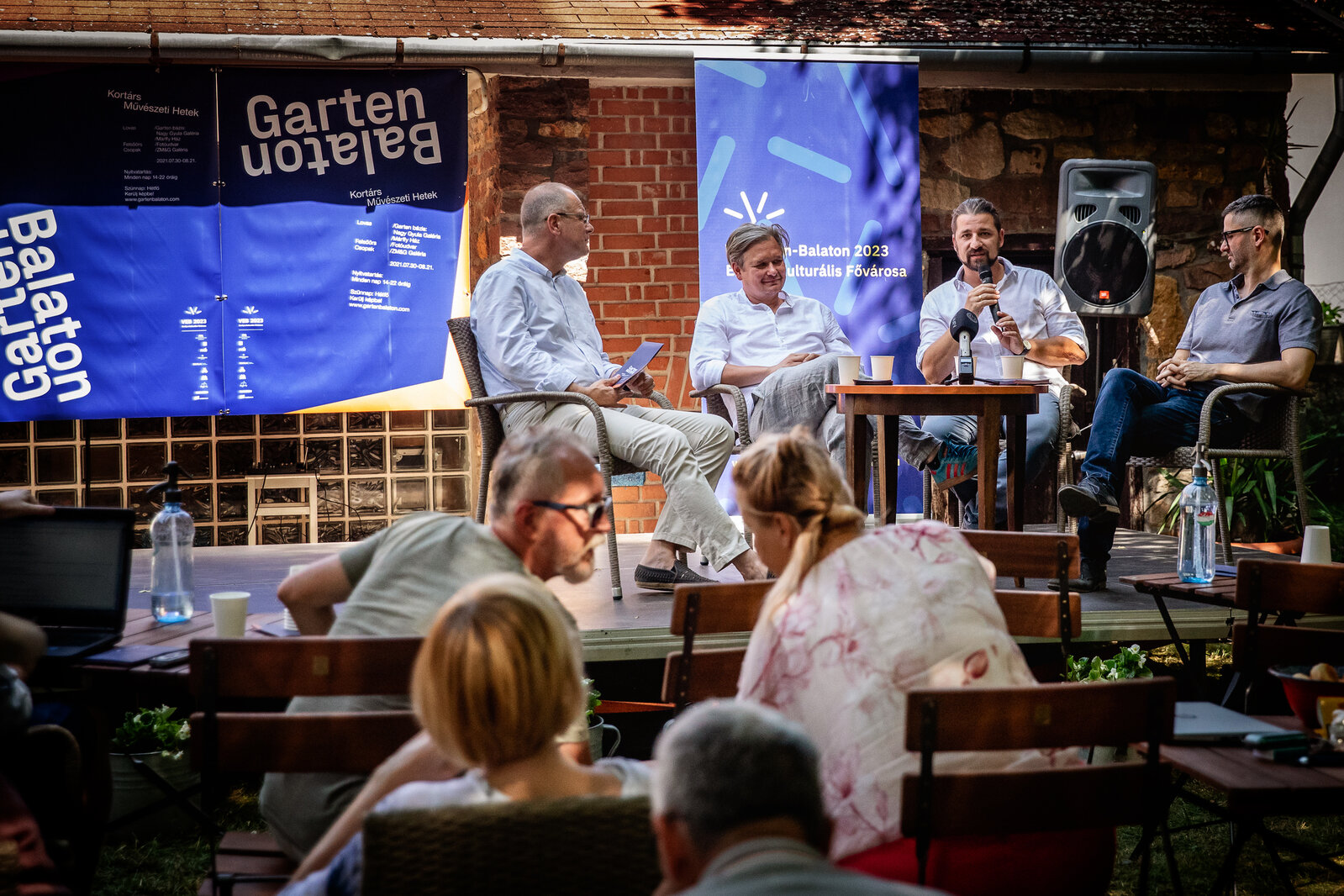 A sajtó munkatársai július 28-án, szerdán már bejárták a helyszínt, ismerkedtek a programokkal, kiállításokkal, installációkkal. A sajtótájékoztatón részt vett dr. Navracsics Tibor, a Veszprém-Balaton 2023 kormánybiztosa, Nagy Krisztián, a Veszprém-Balaton 2023 Zrt. KULTHÁLÓ VEB2023 projektmenedzsere, valamint Schneller János művészettörténész és Bánki Ákos képzőművész, a Garten Balaton alapítói.